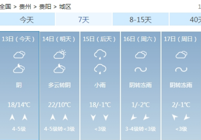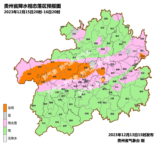 15日夜间至16日白天,省的中部地区东西向一线有冻雨或雨夹雪,北部高海拔地区有小雪,中北部地势高处或高山地区伴有电线覆冰和道路结冰;