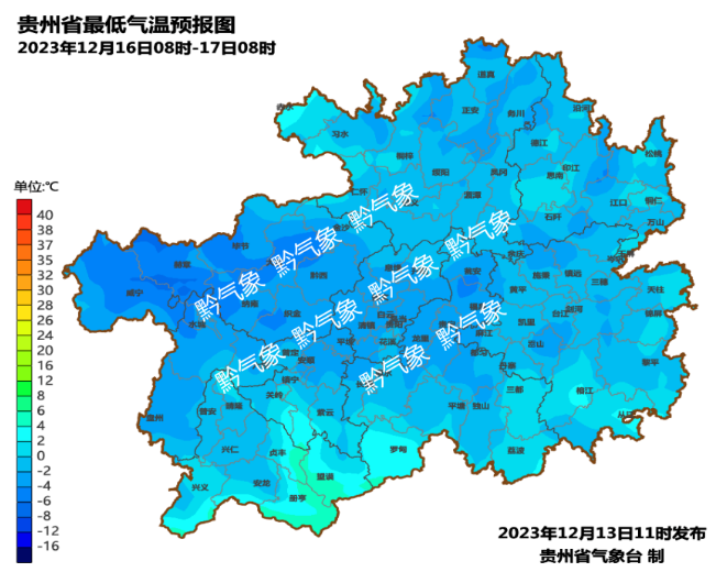 16日夜间,雨雪天气减弱,省的西部高海拔地区有零星冻雨或雨夹雪,但是17日夜间,省的东北部地区仍有雨夹雪或小雪,中部地势高处有冻雨。