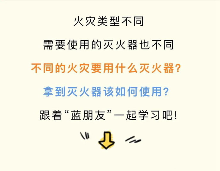 扑救A类火灾(固体物质火灾),应选用水型、磷酸铵盐干粉、泡沫或卤代烷型灭火器;扑救B类火灾(液体或可溶固体物质火灾),应选用泡沫、碳酸氢钠干粉、磷酸铵盐干粉、二氧化碳、灭B类火灾的水型灭火器或卤代烷灭火器;极性溶剂的B类火灾应选用灭B类火灾的抗溶性灭火器;扑救C类火灾(气体火灾),应选用磷酸铵盐干粉、碳酸氢钠干粉、二氧化碳或卤代烷型灭火器;扑救D类火灾(金属火灾),应选用扑灭金属火灾的专用灭火器,可用干砂或铸铁屑末代替;扑救E类火灾(带电火灾),应选用磷酸铵盐干粉、碳酸氢钠干粉、卤代烷或二氧化碳灭火器,但不得选用装有金属喇叭喷筒的二氧化碳灭火器。扑救F类火灾(油类火灾),应选用水基、干粉、泡沫、卤代烷或二氧化碳灭火器,但不能直接用水灭火,以免造成更大的意外火灾。
