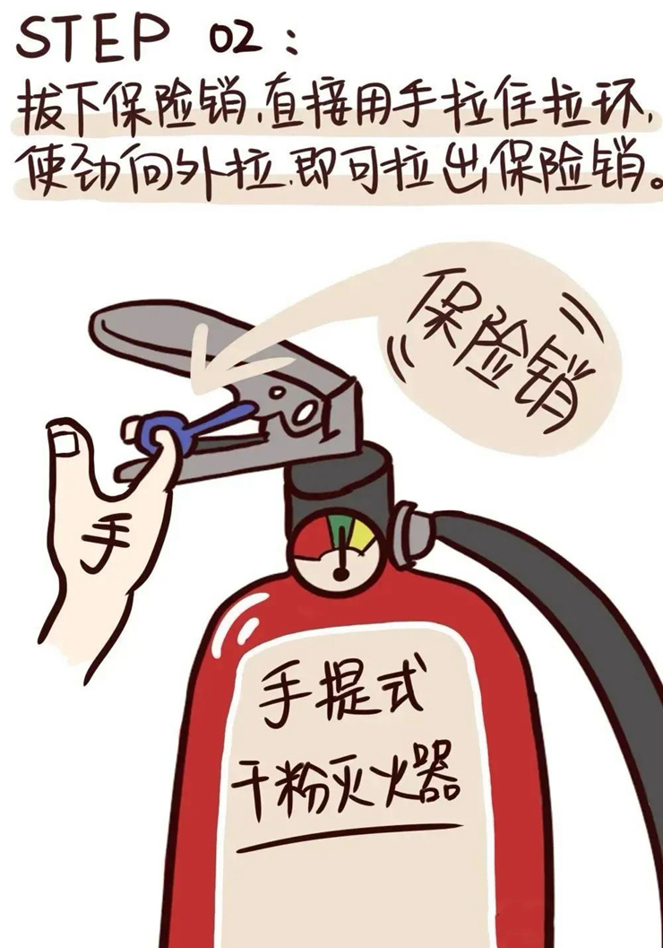推车灭火器一般由两人操作,使用时,将灭火器迅速拉到或推到火场,在离起火点上风口10米处停下。一人将灭火器放稳,拨下保险销,迅速打开气体阀门;一人迅速展开喷射软管,一手握住喷射枪枪管,另一只手勾动扳机,将喷嘴对准燃烧处,扑灭火灾。