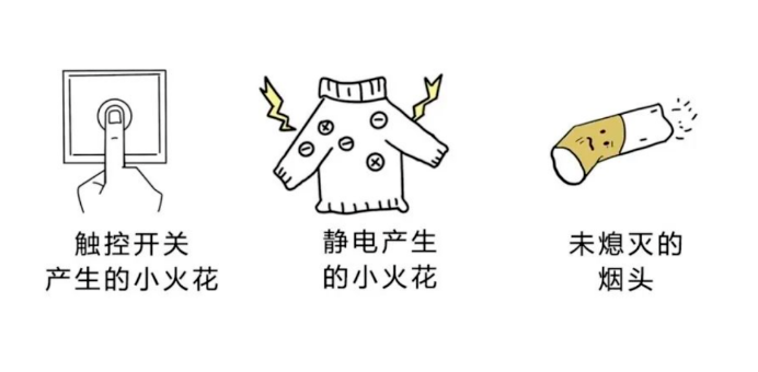 三是遇到引火源。当处于爆炸浓度范围内时,包括但不限于如下情形,都有可能引发爆炸。