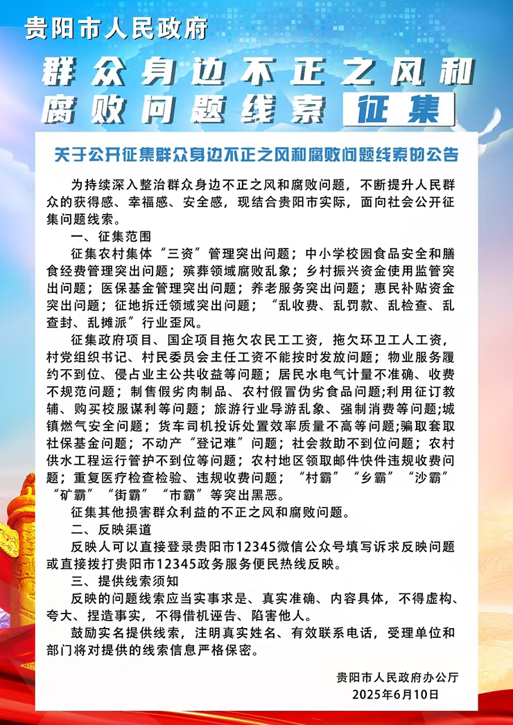 贵阳市人民政府关于公开征集群众身边不正之风和腐败问题线索的公告